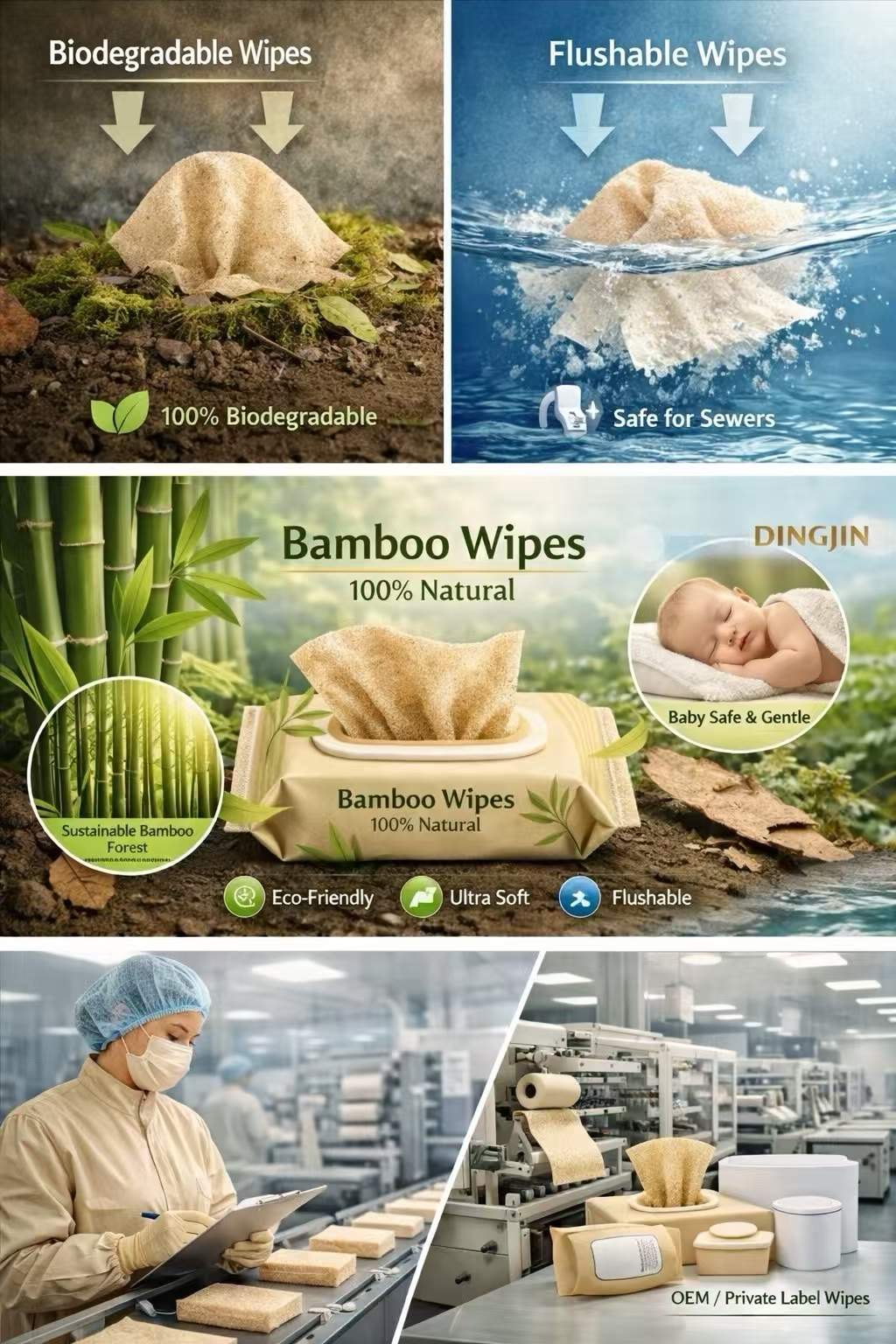 Keywords optimized: biodegradable wipes, flushable wipes, bamboo fiber wipes, eco-friendly baby wipes, sustainable wet wipes, OEM wipes manufacturer